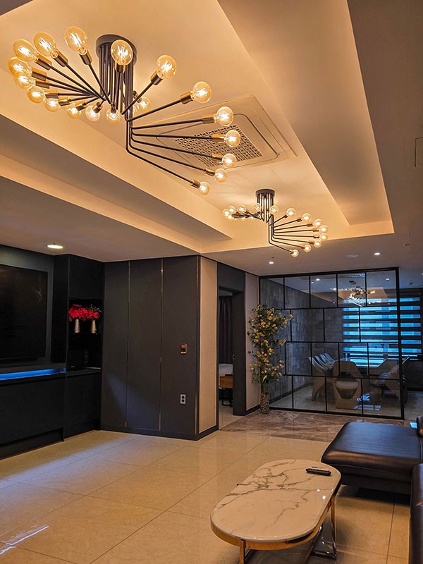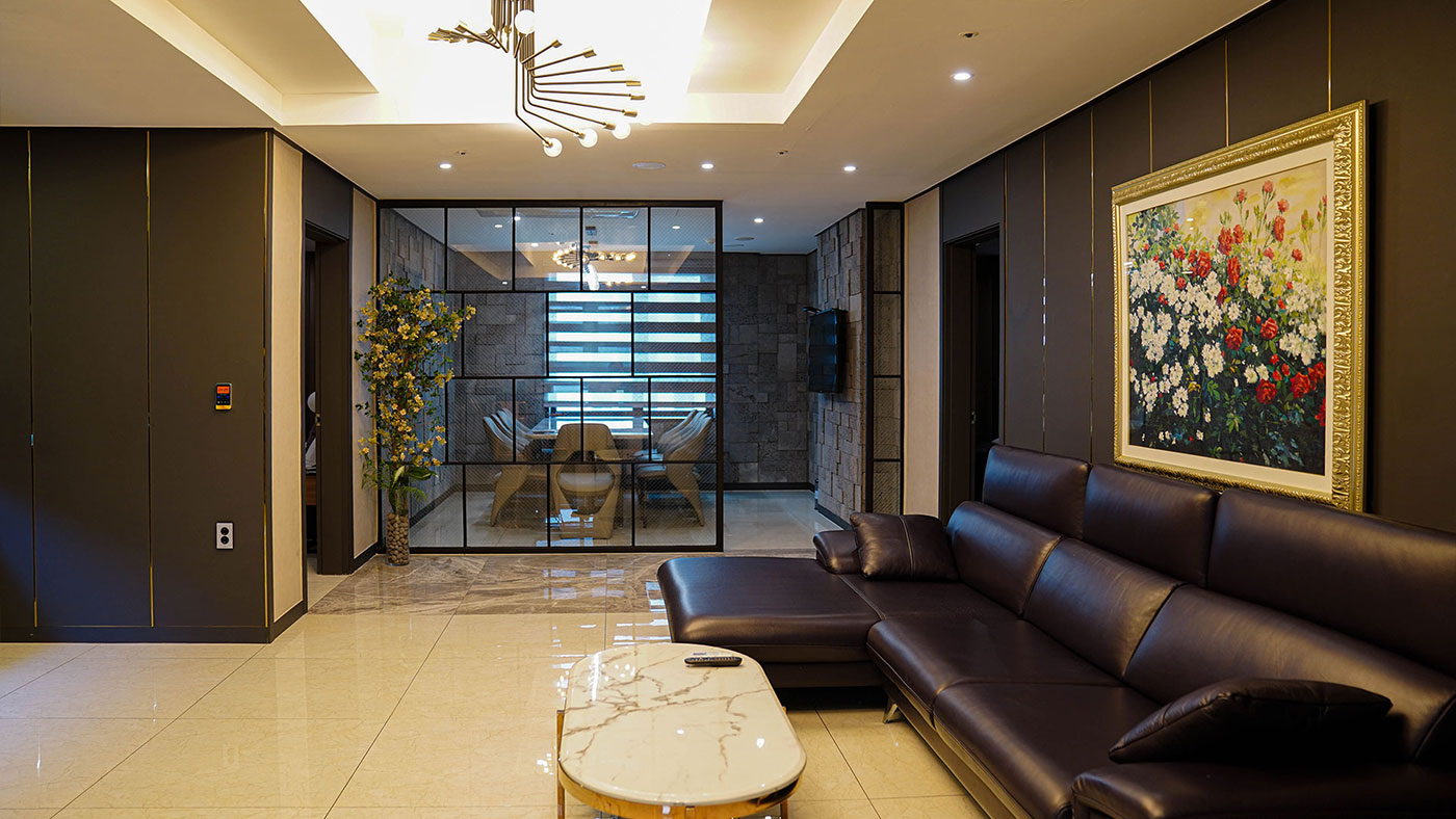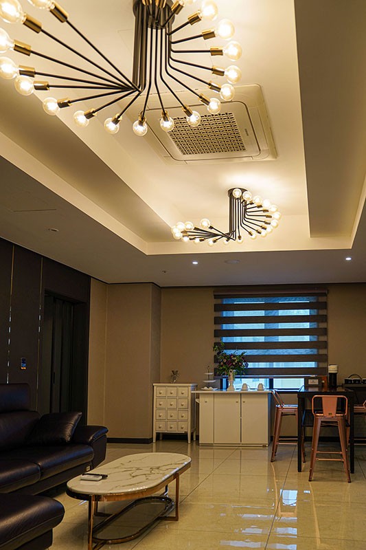 Information 체크 인 15:00 체크 아웃 11:00 기준 인원 4인, 최대 5인 / 1인 추가시 16,500원 (1인 어미니티 추가 제공) 객실 구성 침실1, 욕실3, 주방1, 거실2 침대 타입 King Size 1600*2000㎜ 1EASingle 1100*2000㎜ 3EA 객실 면적 124.64m²
