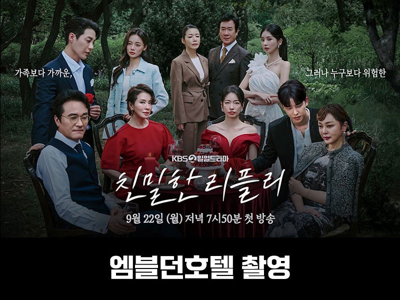 엠블던호텔 소식 Embledon News KBS2TV 친밀한 리플리 엠블던호텔 촬영 장소 협찬 웹관리자 작성일2025.11.11 15:08 조회수211 KBS2TV 일일드라마 '친밀한 리플리' 촬영이엠블던호텔에서 진행되었습니다. 목록 이전글 이전글이 없습니다. 다음글 9월의 드라마, 안산 엠블던호텔 '루시아 웨딩'에서 시작되다.