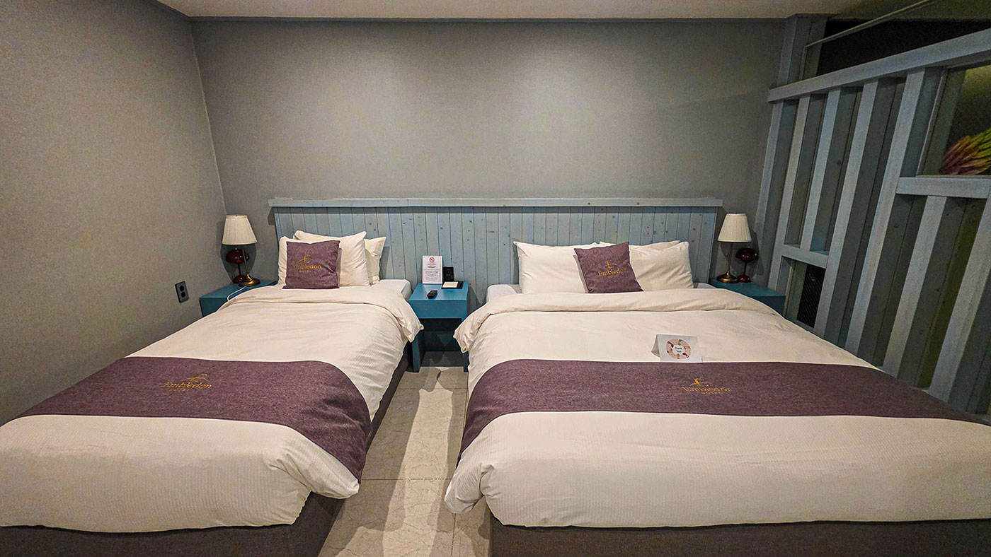 예약 및 이용문의 체크인 오후 3시 이후, 체크아웃 오전 11시 전 객실 금연 조식 이용 안내 엠다이닝 07:00~09:00(주중/주말/공휴일) 취소 규정 입실일 전일 18시 이전 무료 취소 18시이후 ~ 당일 1박 요금 100% 성수기 취소 규정 2일전 자정까지 취소시 50% 1일전 18시까지 취소시 70% 18시이후 ~ 당일 1박요금 100% 전화 +82-31-413-2222 이메일 embledon2222@gmail.com 객실 예약하기
