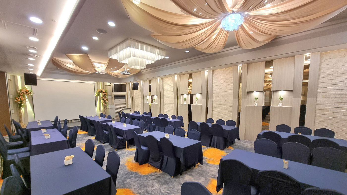 Syaina Hall 샤이나홀 심플하고 우아한 분위기 속에서 행사의 성격에 따라 다양한 규모로 이용 가능합니다. 샤이나홀 Syaina Hall 연회 예약문의 Special Feature 심플하고 우아한 분위기의 샤이나홀은 친목 모임, 가족 모임, 소규모 비즈니스 미팅 및프라이빗한 모임에 최적의 환경을 갖추고 있습니다. 오랜 시간 축적된 호텔의 전문적인 서비스 경험을 토대로 성공적인 행사를 연출하실 수 있습니다. Floor5F Scale200석