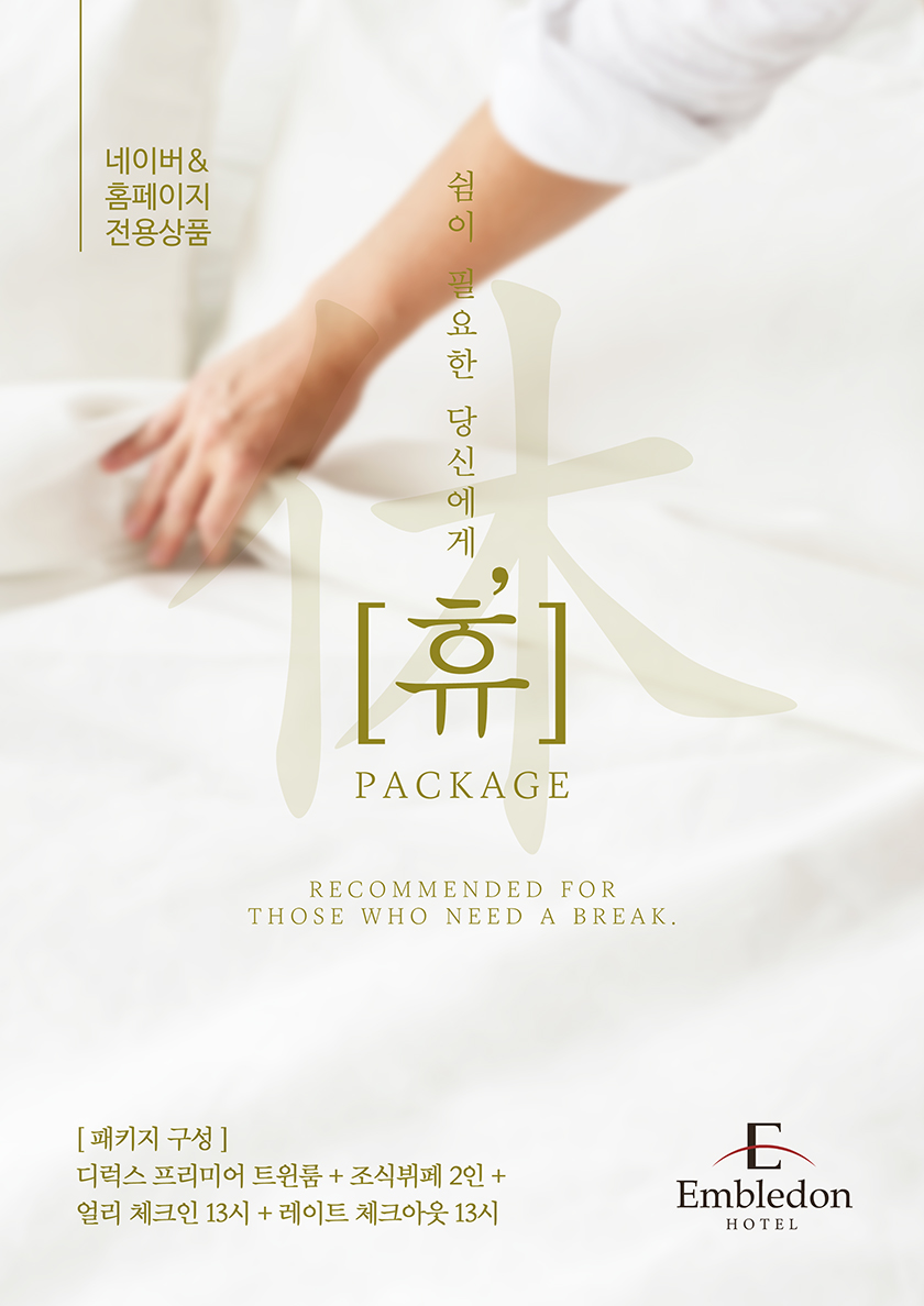 패키지 상세 혜택 휴패키지 쉼이 필요한 당신에게 편안한 휴식과 재충전을 패키지 기간 : 2026/01/01 ~ 계속 TEL : 031-413-2222 패키지 혜택 네이버 & 홈페이지 전용 상품[휴 패키지]디럭스 프리미어 트윈룸 + 조식뷔페 2인 +얼리 체크인 13시 + 레이트 체크아웃 13시★ 평일기준 169,800원★ 금, 토 및 공휴일 전날 186,800원패키지 문의전화 031-413-2222 패키지 기간 2026/01/01 ~ 계속 패키지 예약 목록 이전 패키지 메리미 패키지 다음 패키지 Camping in the train